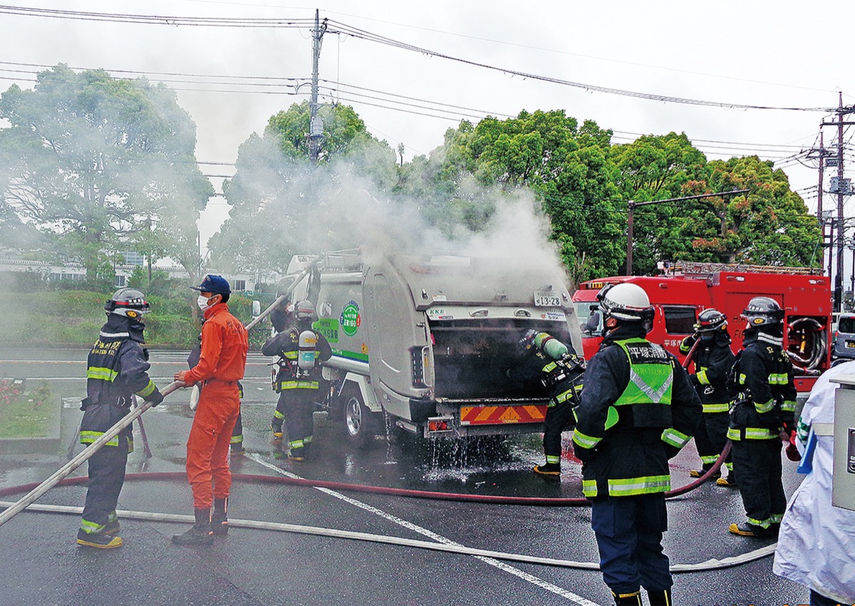 同課によると、収集車の火災は2020年度に5件、21年度は3件あった。今年度は4月と5月の不燃物収集日に2件ずつ発生しており、5月は9日に下島、16日に北金目を走行中の収集車から出火、消防隊が出動して消火活動にあたった。