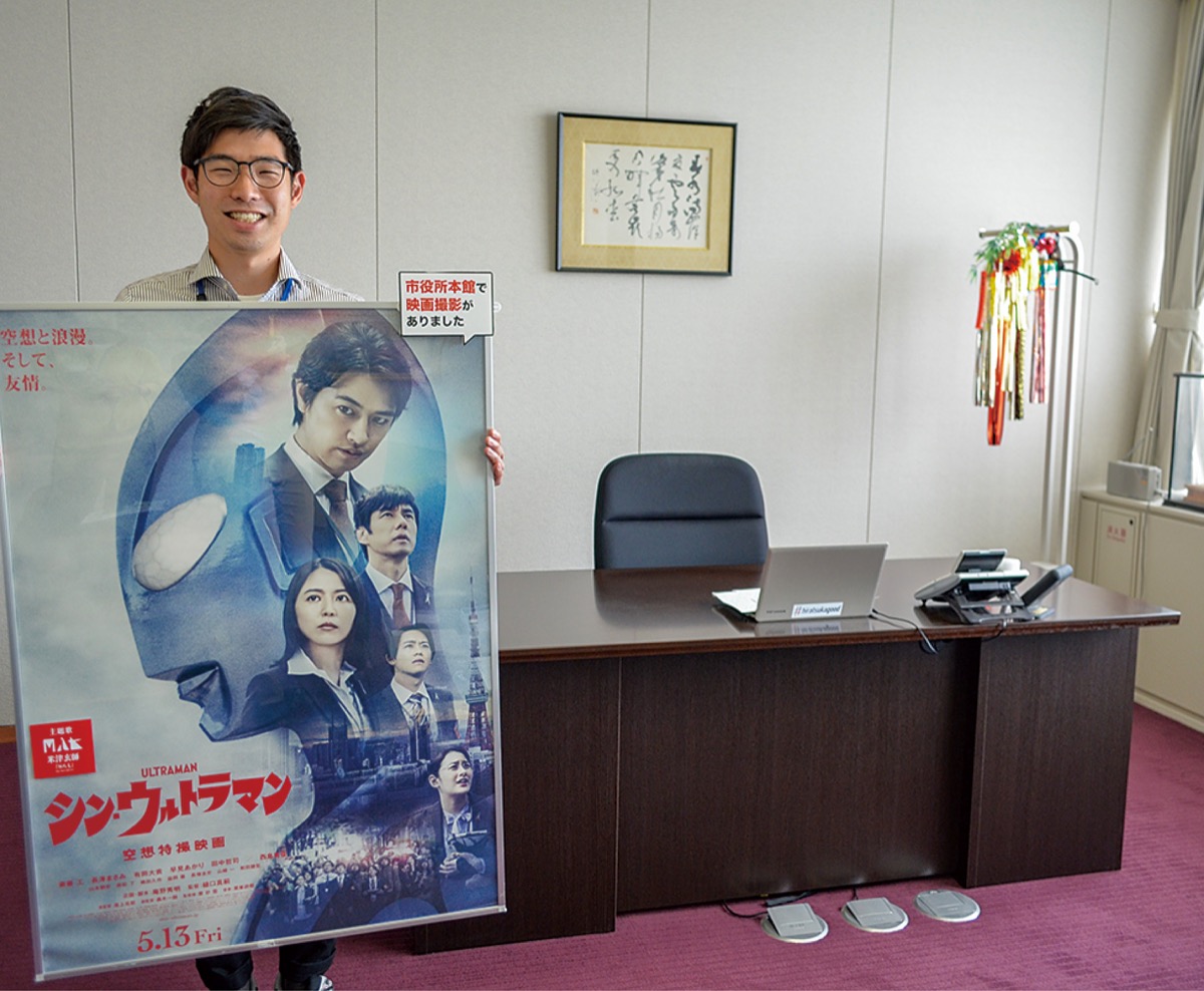 撮影当時、市広報課シティプロモーション担当だった橋本龍太朗さん(35)は本作の企画・脚本を手掛けた庵野秀明さんのファン。ロケ地打診を受けると、他の候補地に先を越されないようにと前のめりで受け入れの準備を進めた。「市庁舎での撮影は初。関係各課との調整は大変だったが、市民の方々が平塚に愛着を持つきっかけになれば」と思いを語った。