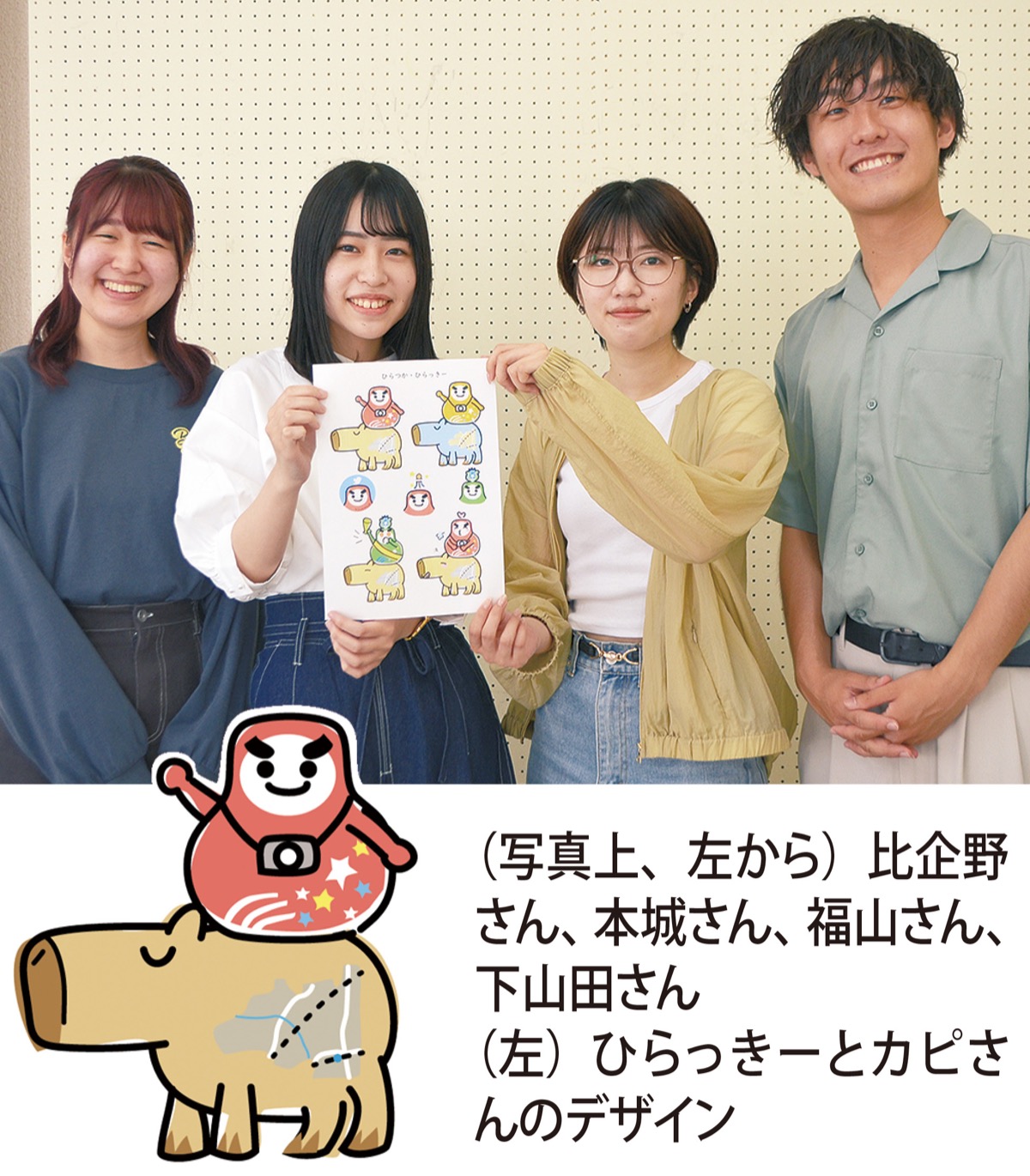 平塚市観光協会のオリジナルキャラクターがこのほど完成した。だるまをモチーフにした「ひらっきー」とカピバラの「カピさん」。市民観光サポーター学生グループの4人が生みの親となった。「七夕まつりから願いが叶う、ラッキーなまちと連想して名付けました」と代表の福山友唯さん(21)は話す。