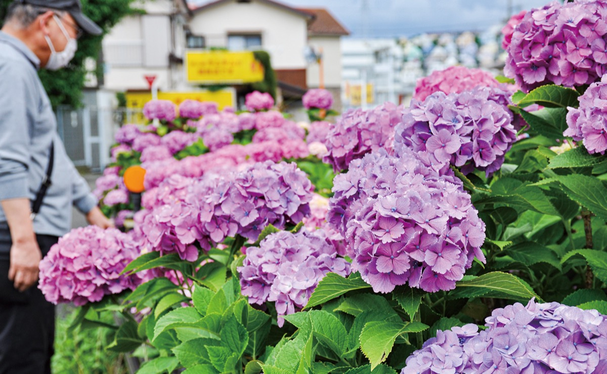 このあじさいは河内川あじさいの会により1998年から植栽が始まり、挿し木などで繁殖させ、花を増やしてきた。同会によると、6月下旬まで見ごろという。