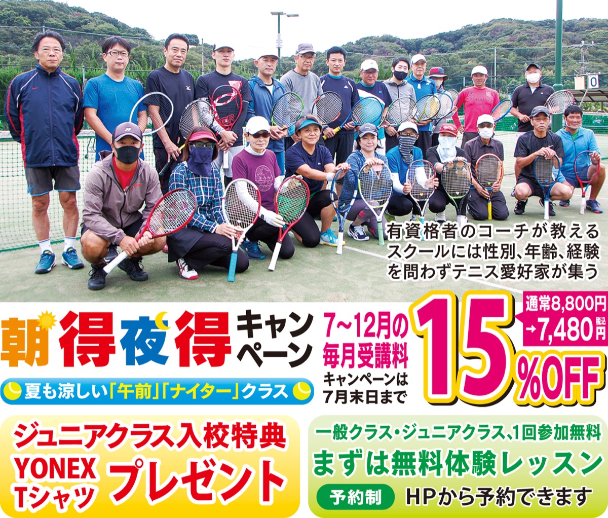 自然に囲まれたリゾート感たっぷりのコートで「コロナ」「3密」を気にすることなく、快適にプレイが楽しめる湘南平テニスクラブ。現在同クラブが運営するスクールでは様々なキャンペーンを実施中だ。
