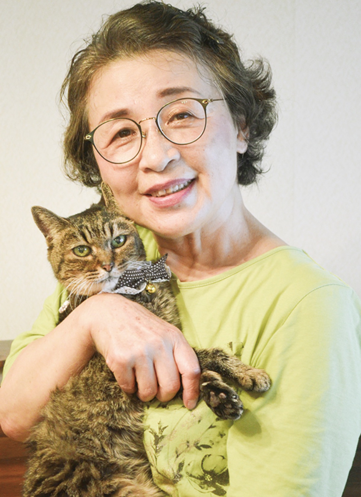市内河内に22歳8カ月のご長寿猫「ワカメちゃん(愛称・チビちゃん)」がいる。人間の年齢に換算するとなんと106歳。飼い主の北山久仁子さんは「特別なことはしていない。抱っこが大好きなのでスキンシップをたくさんとって、よく褒めています」とチビちゃんとの日々に目を細める。