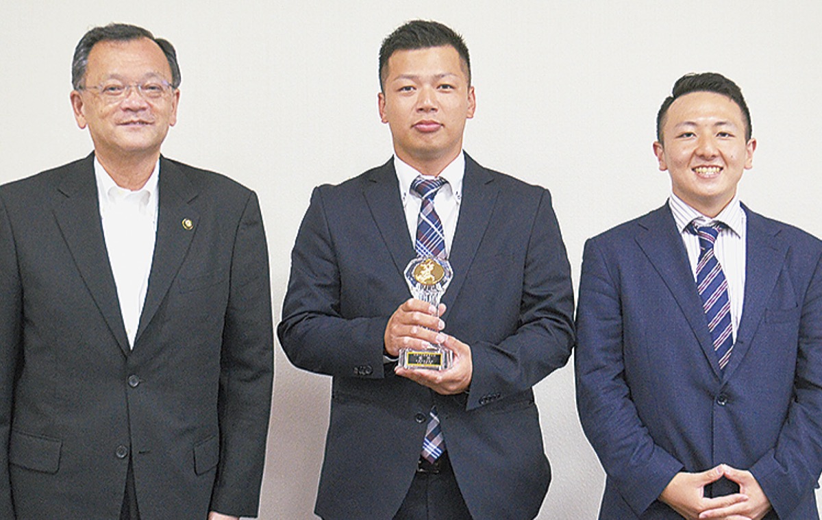 弥代表主将らが7月15日、平塚市役所を訪問し、8月の神奈川県知事杯野球大会に向けての抱負を語った。