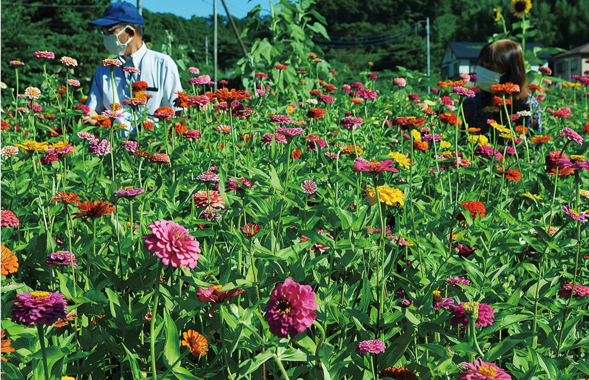 庭には1500本ほどの百日草が植えられており、6月中旬ごろから咲き始めたという。今年初めて百日草の栽培に挑戦した水島さん。「除草剤を使っていないので草むしりが大変。ぜひみなさんに楽しんでもらえれば」と話した。