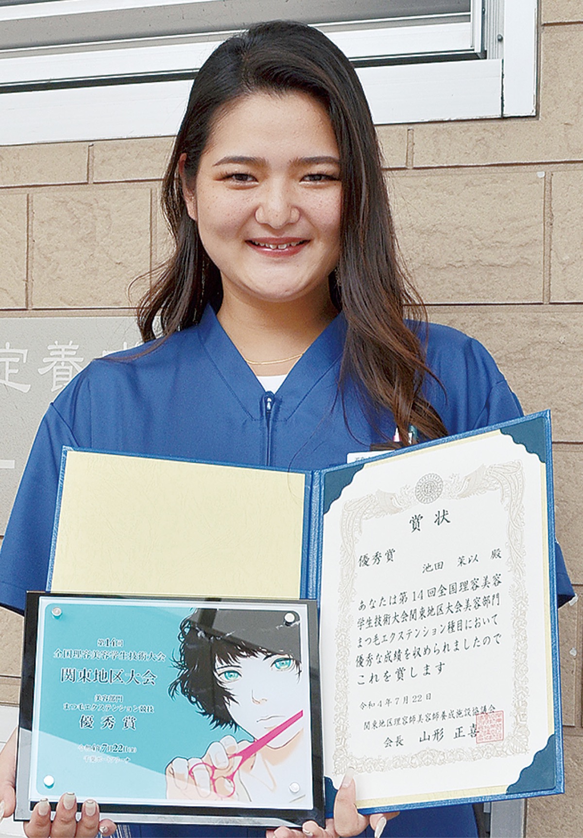 明石町の理美容師養成校「湘南ビューティーカレッジ」の池田茉以さん(美容課2年)が7月に行われた全国理容美容学生技術大会関東地区大会まつ毛エクステンション部門で1位にあたる優秀賞を受賞した。池田さんは11月に大阪で開催される全国大会に進む。