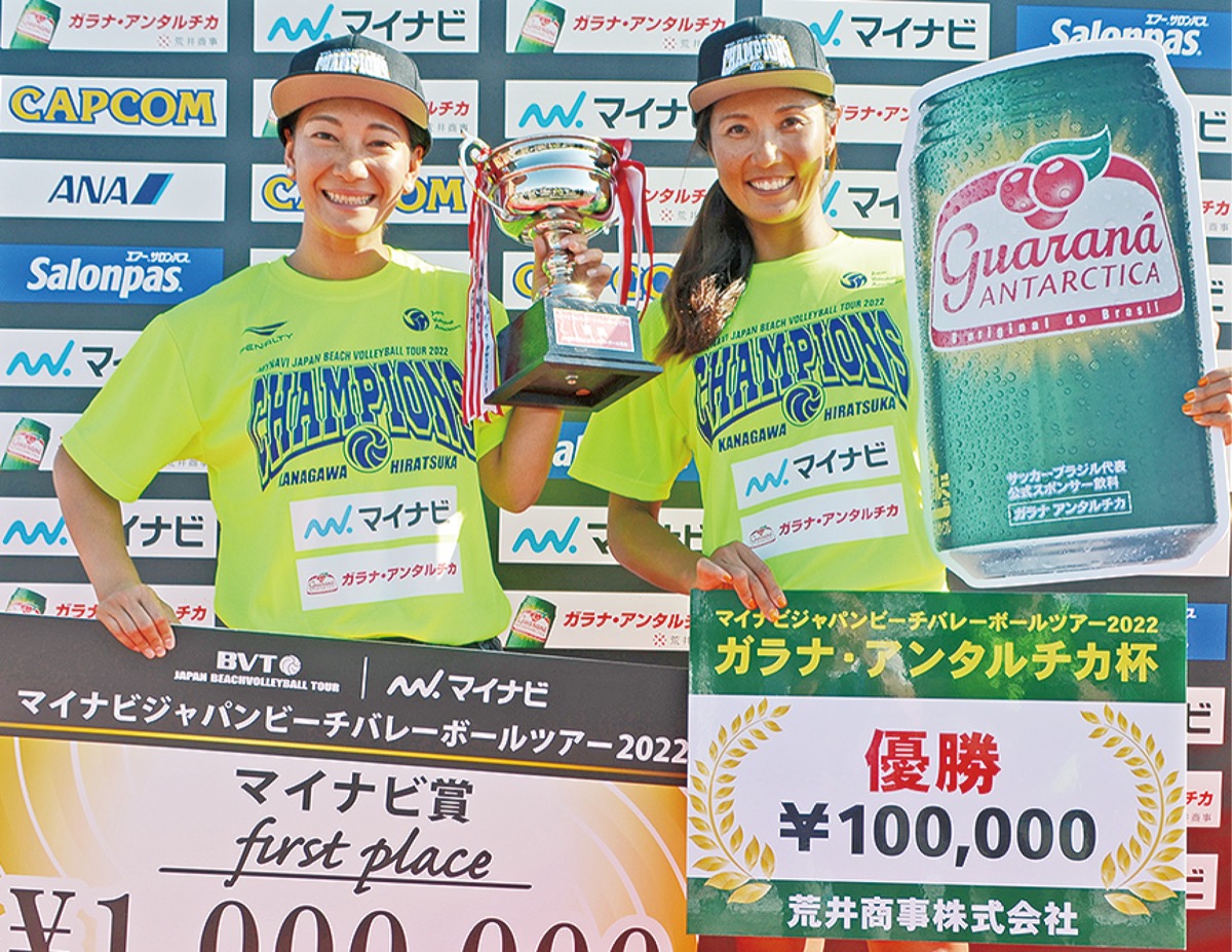 「マイナビジャパンビーチバレーボールツアー2022第3戦平塚大会ガラナ・アンタルチカ杯平塚市市制施行90周年記念大会」の女子決勝戦が9月4日、湘南ベルマーレひらつかビーチパークで開かれ、同パークに拠点を置く長谷川暁子選手と坂口由里香選手のペアが優勝した。