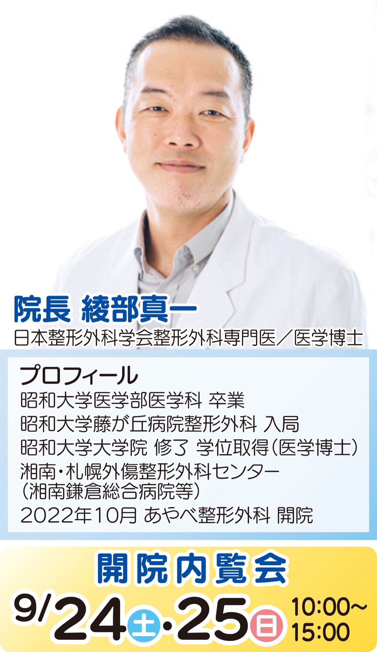 市内八重咲町、旧山口整形外科の場所に10月1日(土)、あやべ整形外科(綾部真一院長)が新規開院する。同院では整形外科専門医が最新の医療器・リハビリ機器を用いて正確な診断と適切な治療を行っていく。市内では数少ない拡散型衝撃波による治療を導入、漢方薬も取り入れ、最新リハビリ機器と内服の両面から回復を目指していく。大型モニターを配置した広々としたリハビリ室には理学療法士6名が常勤。偏平足や外反母趾、O脚などの痛み軽減や負担を減らすインソール療法では専門技術者が歩き方を見ながら調整し最適なインソールを提供する。また同院は骨粗しょう症や、加齢により運動器が衰えるロコモティブ症候群の予防にも力を入れている。「閉経後の女性、60歳を過ぎた男性は要注意です。簡単な検査でご自身の症状、対策が分かります。また、服薬を続けているが効果がないという人も、まずはお問い合わせください」と綾部院長。9月24日(土)・25日(日)に内覧会があるので相談してみては。
