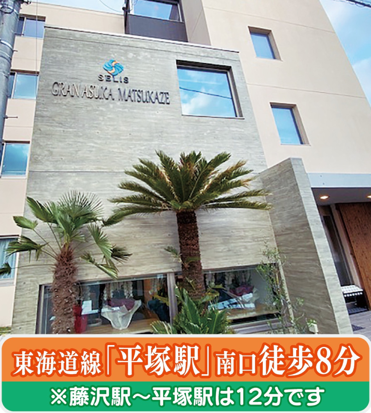 平塚駅から袖ヶ浜海岸にかけて松風町に今年5月、住宅型有料老人ホーム「グランアスカ松風」がオープンした。平塚を拠点に全8施設を展開する株式会社セリス(本社・平塚市八重咲町)が運営している。