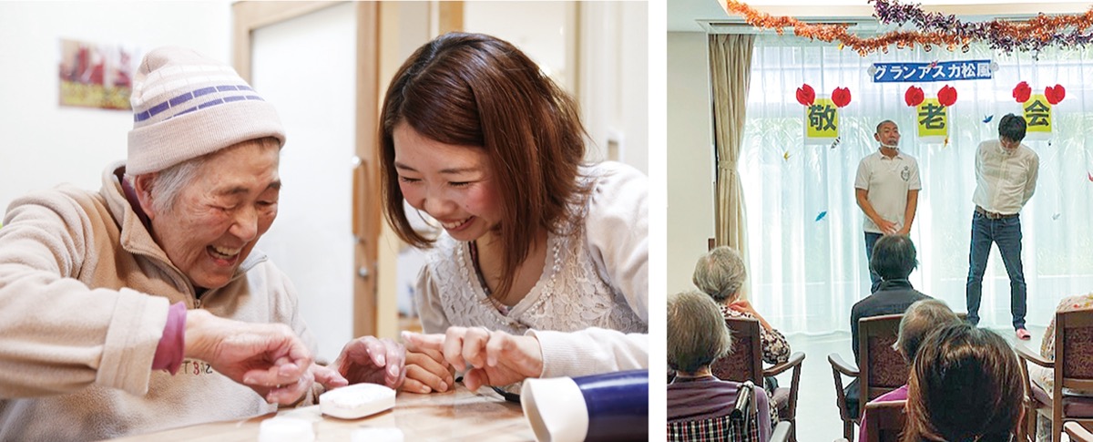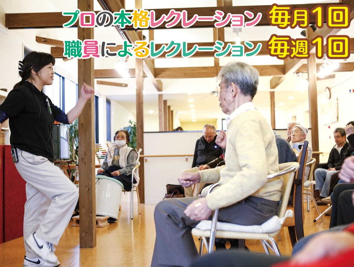 小規模施設ならではの親近感と「プロ」を招く毎月のレクリエーションにも力を入れている。9月の敬老会には人気お笑い芸人のレギュラーも訪れた。同施設では「ご入居者様に喜んでいただける楽しい施設をめざしスタッフ一同頑張っています!」と話している。