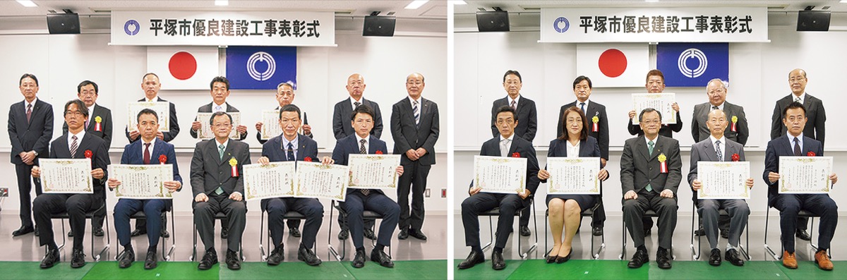 平塚市優良建設工事表彰式が10月17日、市消防署本署で行われ、15件・12社が表彰された。