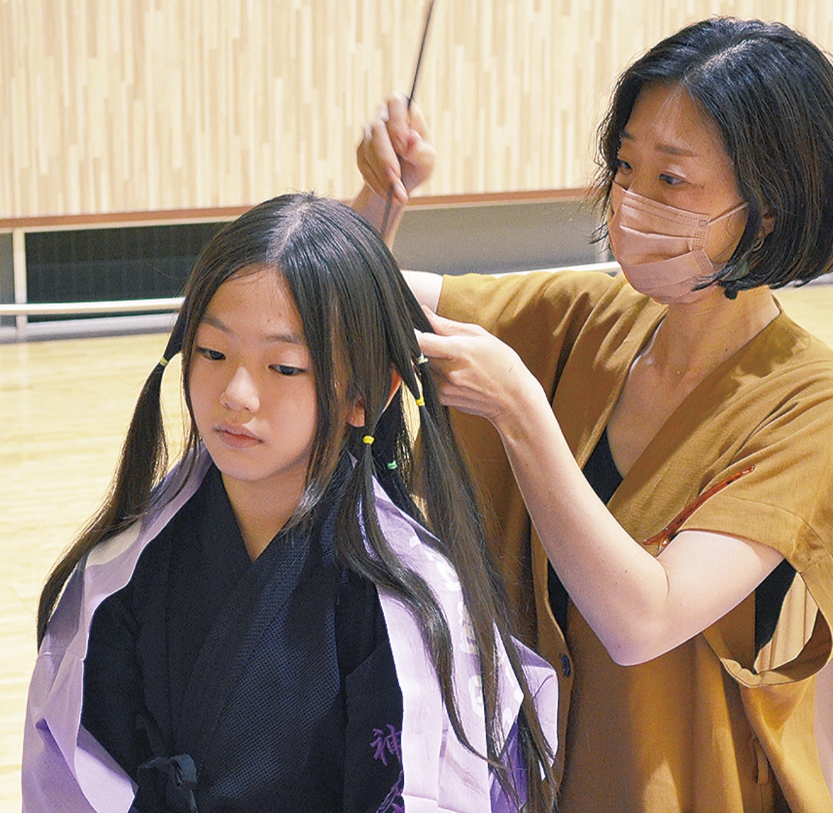 琥弥太さんは2日、剣道の市大会で優勝を収めるとその足で敬武館の道場へ。道場関係者らが見守る中、栄美さんのいとこで美容師の小川美佐子さんにカットしてもらった。束ねた髪に母の栄美さんや荒巻館長らが順々にはさみを入れていく様はさながら大相撲の”断髪式”。最後はバリカンを入れ剣道向きの丸刈りになった。栄美さんは「もう三つ編みにできないのが少し寂しい」と感慨深げに話した。
