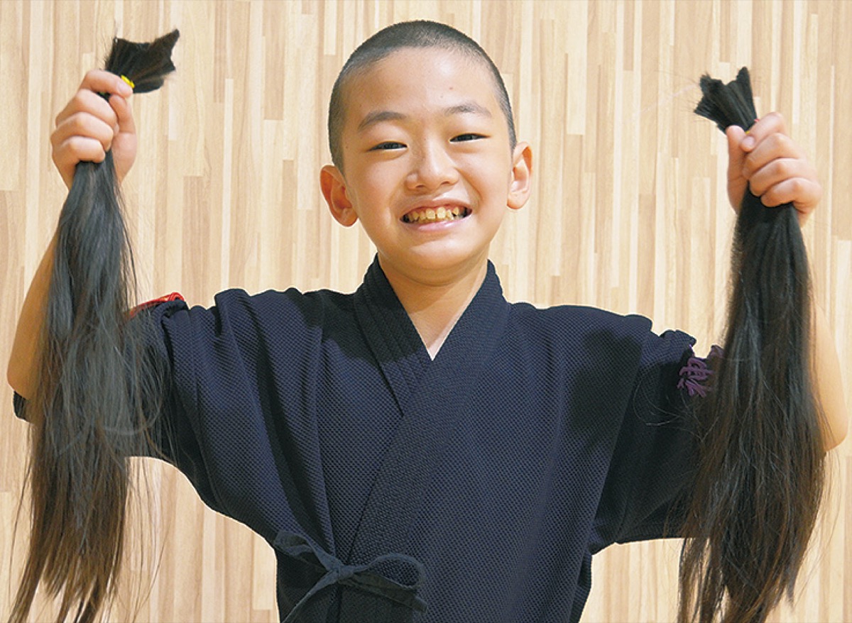医療用ウィッグとして髪を寄付するためには31cm以上の長さが必要と定められており、小学2年から約3年間かけて40cmほど髪を伸ばしてきた。5歳から警察官を志して剣道を始めた琥弥太さんは、面を着ける際は三つ編みにする。「夏場は特に蒸れて大変。でもきれいな髪を保つためにケアも頑張った」と振り返る。