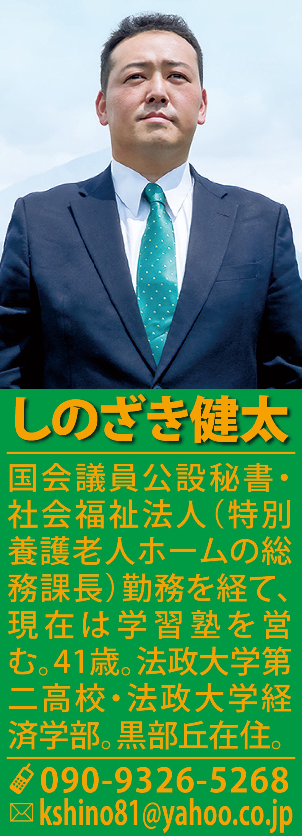 皆様はじめまして。来春に向けて平塚復活をテーマに活動中のしのざき健太です。