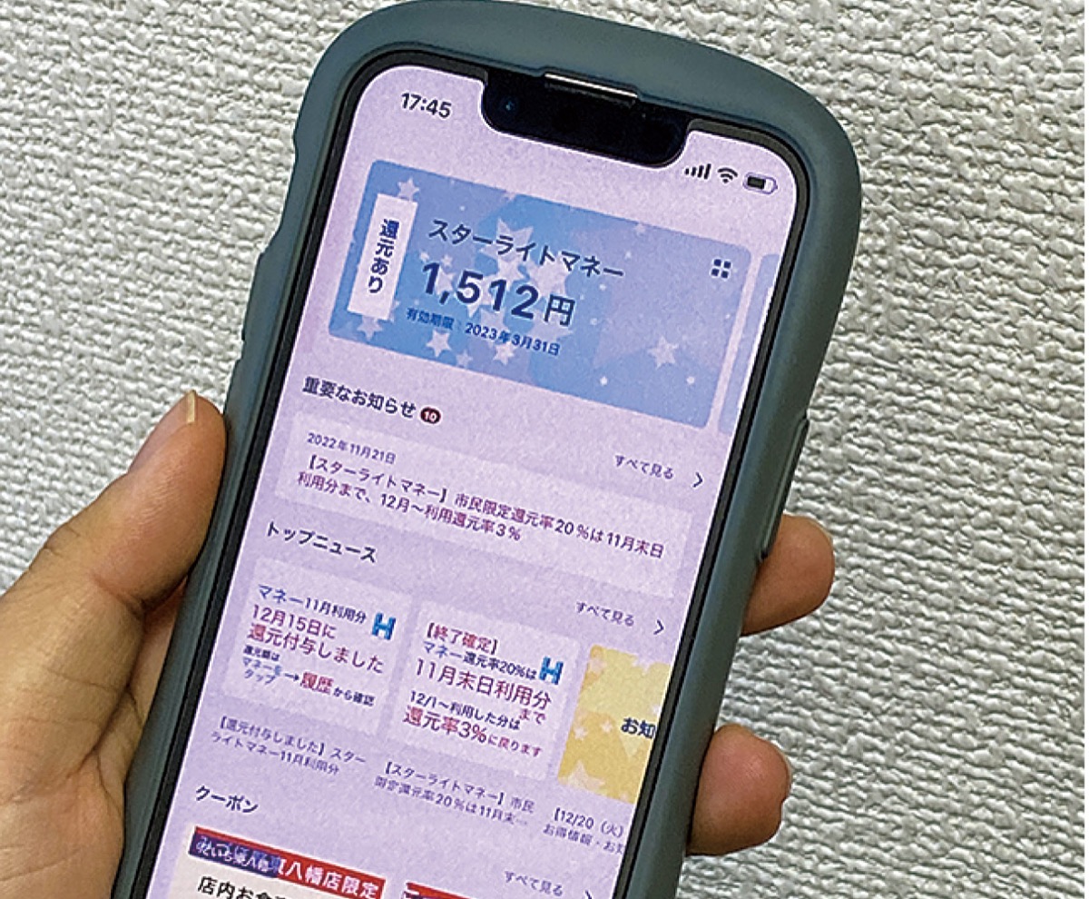 市はスターライトマネーの利用期限を23年度中までに延長する予定で、担当者は「スターライトマネーでの交付により市内で買い物する人が増え、市内事業所の支援にもつながれば」と期待を寄せている。