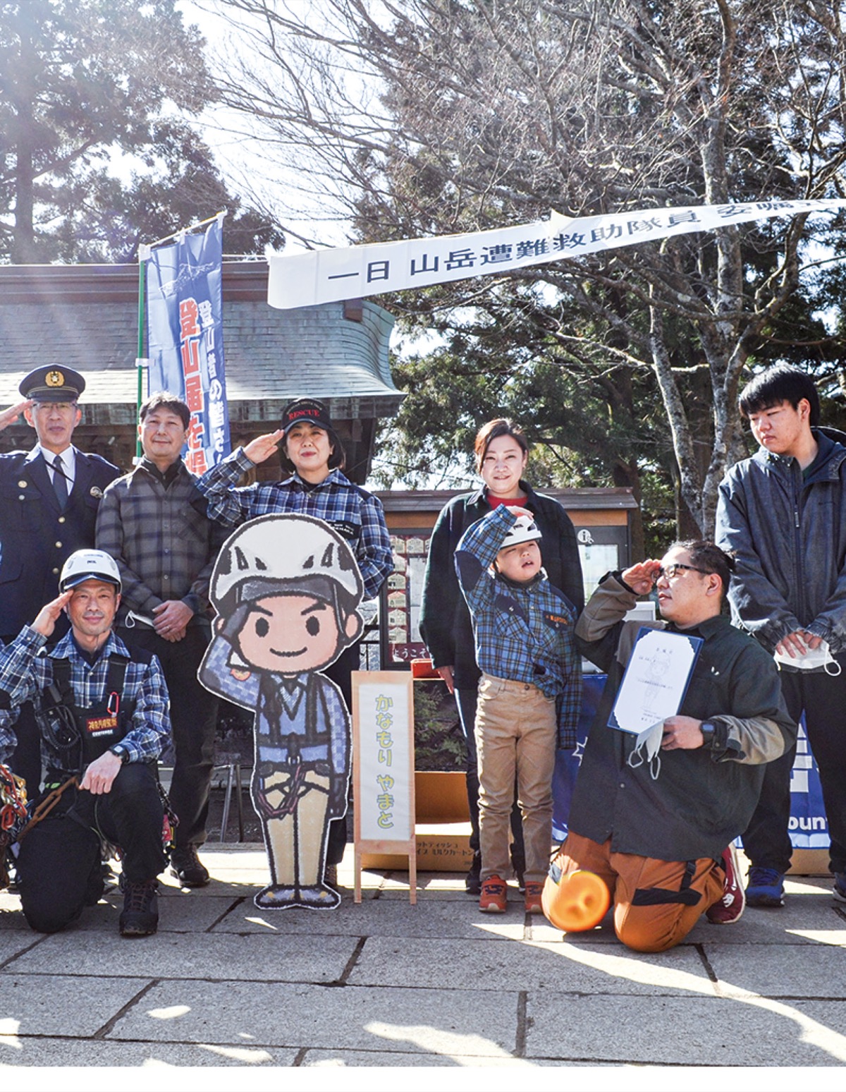 春の登山シーズンを控え、2月18日に神奈川県警などが大山阿夫利神社下社で開いたキャンペーンで、湘南養護学校1年の金森弥真人君(7・平塚市在住)が一日山岳遭難救助隊員に委嘱された。県警山岳遭難救助隊キャラクター「かなもりやまと」君と同姓同名だったことが縁となった。