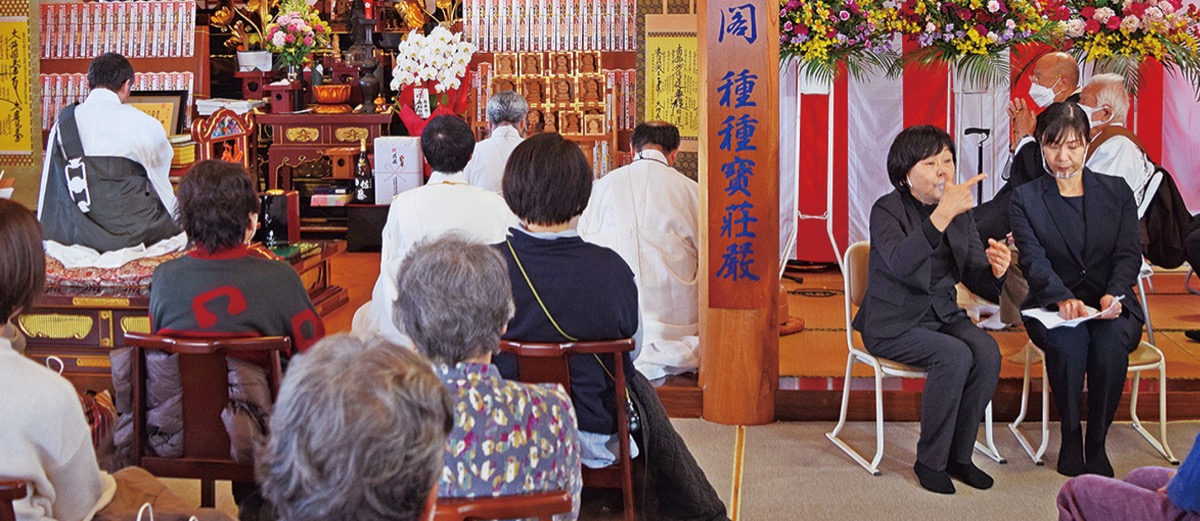 障害のある人が障害を理由に差別的な扱いを受けないよう努める「合理的配慮」の取り組みが市内でも広がっている。2月23日、南金目の日蓮宗法傳寺で修行から帰ってきたことを報告する「帰山式」が行われた際には、神奈川県聴覚障害者福祉センターから2人の手話通訳者が派遣され、修行の内容や所作の意味を同時通訳。聴覚障害のある参加者は「内容がよく分かり参加してよかった」「貴重な体験だった」と感想を寄せた。