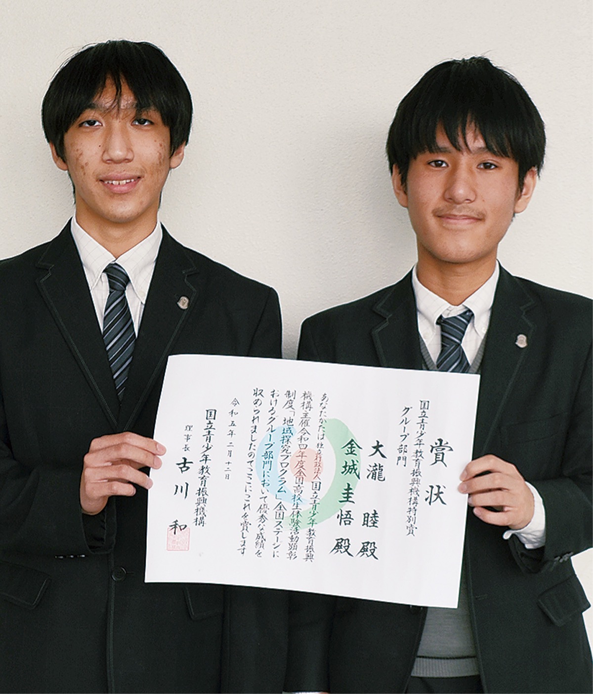 高校生が地域や社会の課題解決に向けた活動の成果をプレゼンテーションする、全国高校生体験活動顕彰制度「地球探求プログラム」で、平塚中等教育学校メディア部の大瀧睦さん(4年次生)と金城圭悟さん(同)が国立青少年教育振興機構特別賞を受賞した。