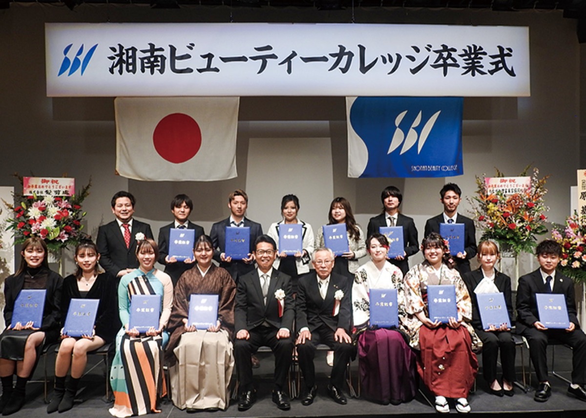 湘南ビューティーカレッジが3月14日、ひらしん平塚文化芸術ホールで「第19回卒業式」を執り行った。新型コロナウイルス感染症対策として規模は縮小されたものの、卒業生はマスク無しで出席。昼間課程理容科の3人、美容科の11人が卒業証書を受け取った。井出隆夫校長は式辞で、「みなさんは”手に職”を持ち一生働くことができるスペシャリスト。仕事を通じて、もらう幸せ・できる幸せ・あげる幸せの3つの幸せをつかめる人生を歩んでほしい」と伝えた。