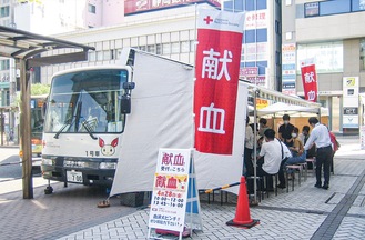 地域貢献の一環として実施したもので、平塚駅北口の献血バス会場にホールの従業員など関係者らが訪れた。献血への協力は昨年に続いて2回目で、2日間の日程で計19人が協力した。