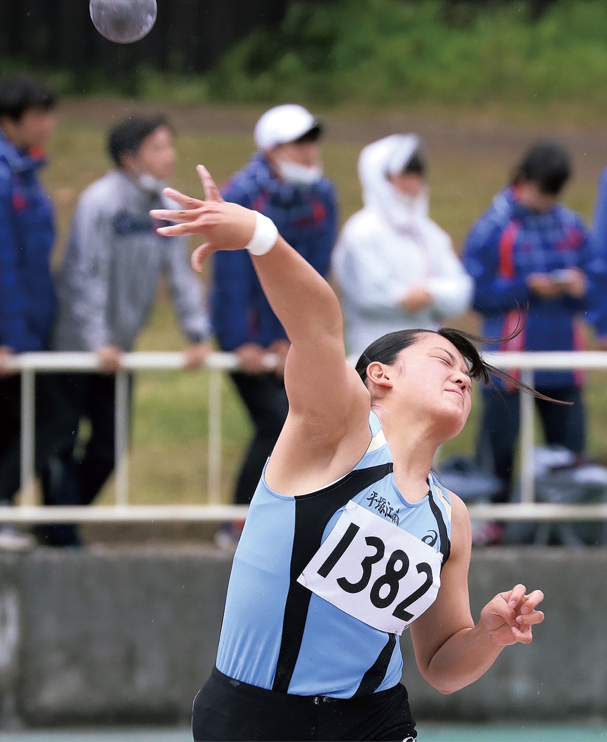 5月14日に行われた砲丸投げでは、5投目の投てきで、県高校記録にあと17cmと迫る13ⅿ80cmの好記録をたたき出し優勝した=写真。