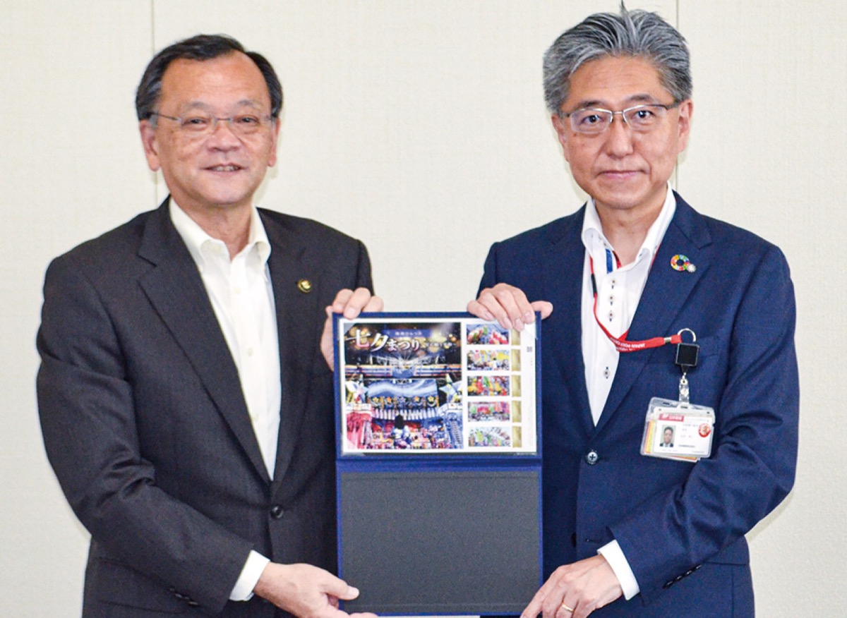 石井局長は「平塚市外の方に手紙を送るときに、七夕切手を使用してもらえれば」とアピール。落合市長も「姉妹都市を訪問するときに、この切手を持っていく」と話した。