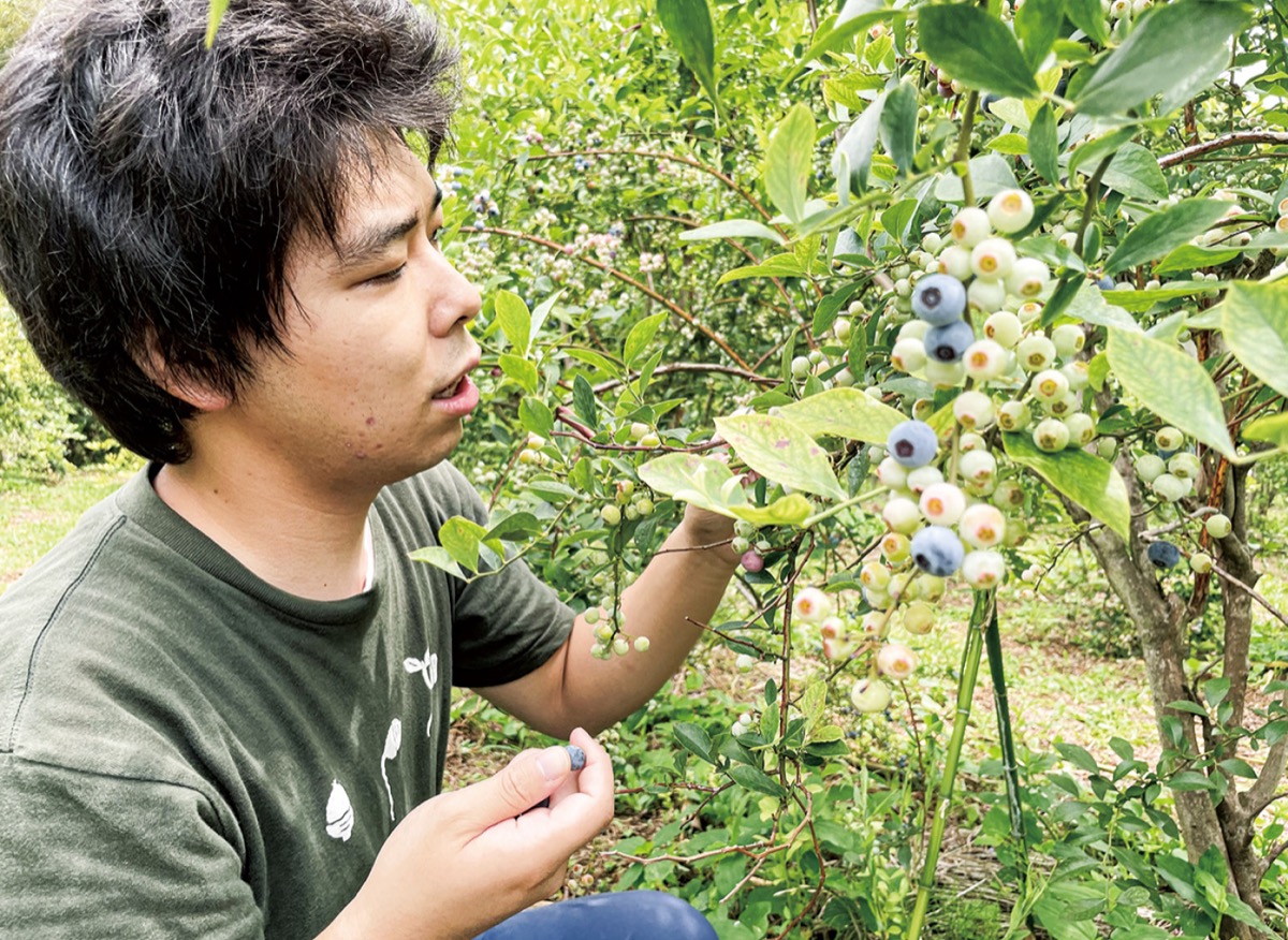 知的障害者らの就労支援を行う社会福祉法人進和学園(出縄守英理事長)の施設「しんわルネッサンス」(上吉沢)の観光農園で7月14日、ブルーベリーの収穫が行われた。