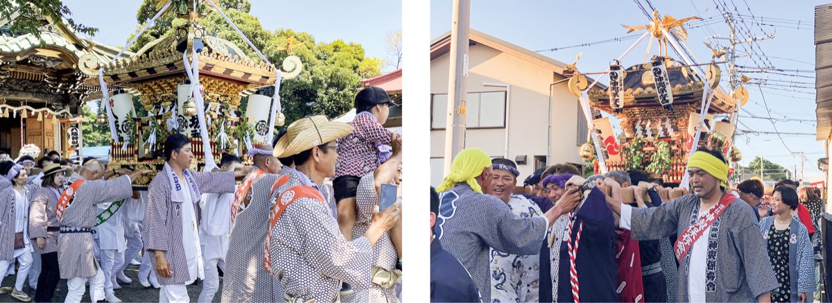 田村八坂神社の例大祭には、白丁着姿の担ぎ手や神輿保存会の関係者らが参加。今年は新型コロナ禍前のように市内や寒川町の神社の保存会など友好団体も駆け付け、威勢の良い掛け声とともに神輿渡御に加わった。沖津善弘宮司は「多くの方にお越しいただき、神様も喜んでいると思う」と笑顔で話した。