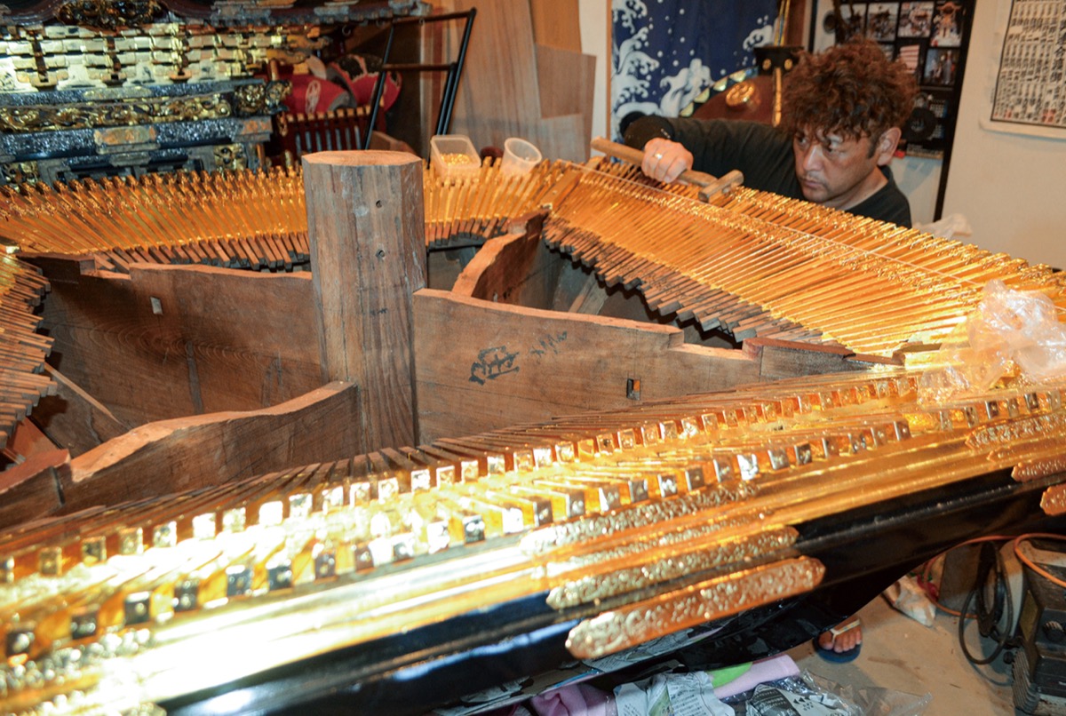 「預かったときは屋根の損傷がひどく、経年劣化している状態だった」(中里さん)といい、神輿をバラバラにするところから作業を始めた。金箔が使われていた四方柱を白檀塗りに、扉の内枠を赤から金箔に、彫刻の色彩も箔彩色に、銀杏面の施されている部分を全て金箔押しに変更し、制作者の思いを伝える。中里さんは「歴史的な神輿の修復に携わることができて幸せ。先人の技術に触れることができ、自分の技量が上がったと思う」と話した。