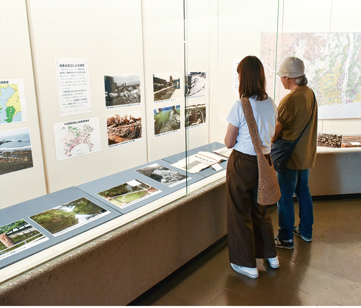 関東大震災から100年の節目を迎え、平塚市博物館1階の寄贈品コーナーでは「大正関東地震と平塚の地盤」が始まった。