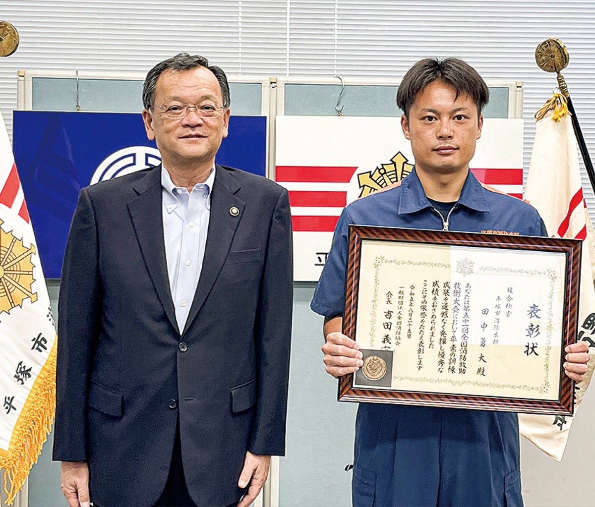 9月25日、落合克宏市長を訪問し、結果報告をした田中さんは「災害時もミスはできない。準優勝で自信がついたので、現場でも冷静な判断を下せるように活動したい」と話した。