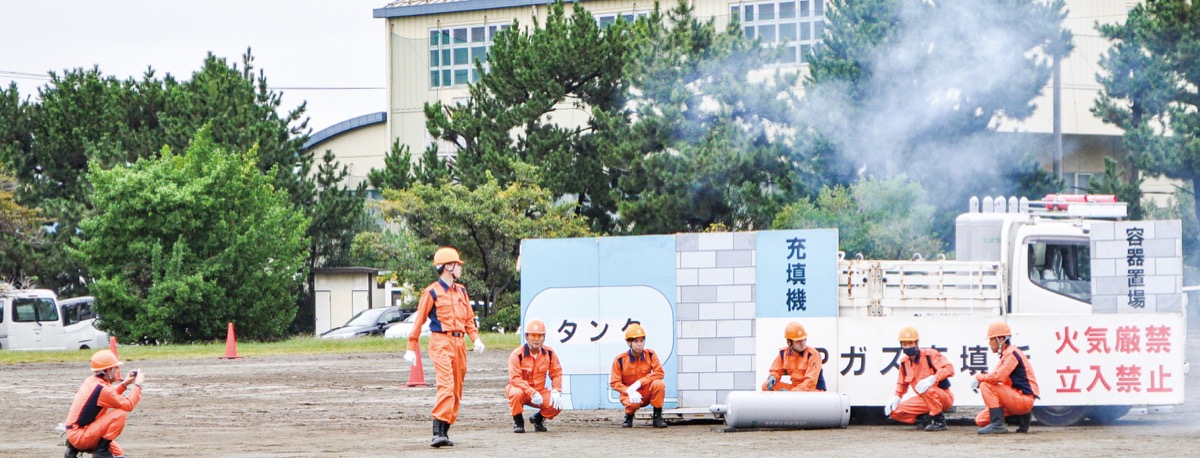 大規模地震発生時に懸念される高圧ガス事故災害への備えを図るため、高圧ガスによる地震災害・事故を想定した実践的な訓練が行われた。