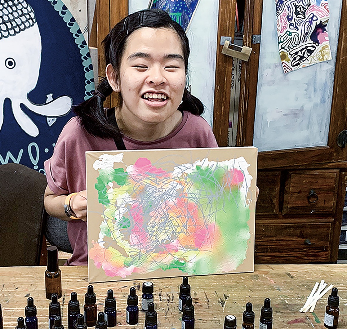 アートで社会課題の解決を目指す「一般社団法人リトルアーティストリーグ」(東京)のルミコ・ハーモニー代表理事が、「視覚障害者の自立の一助を模索したい」と同スタジオに声掛けし実現。日本オーガニックアロマ協会が協力した。
