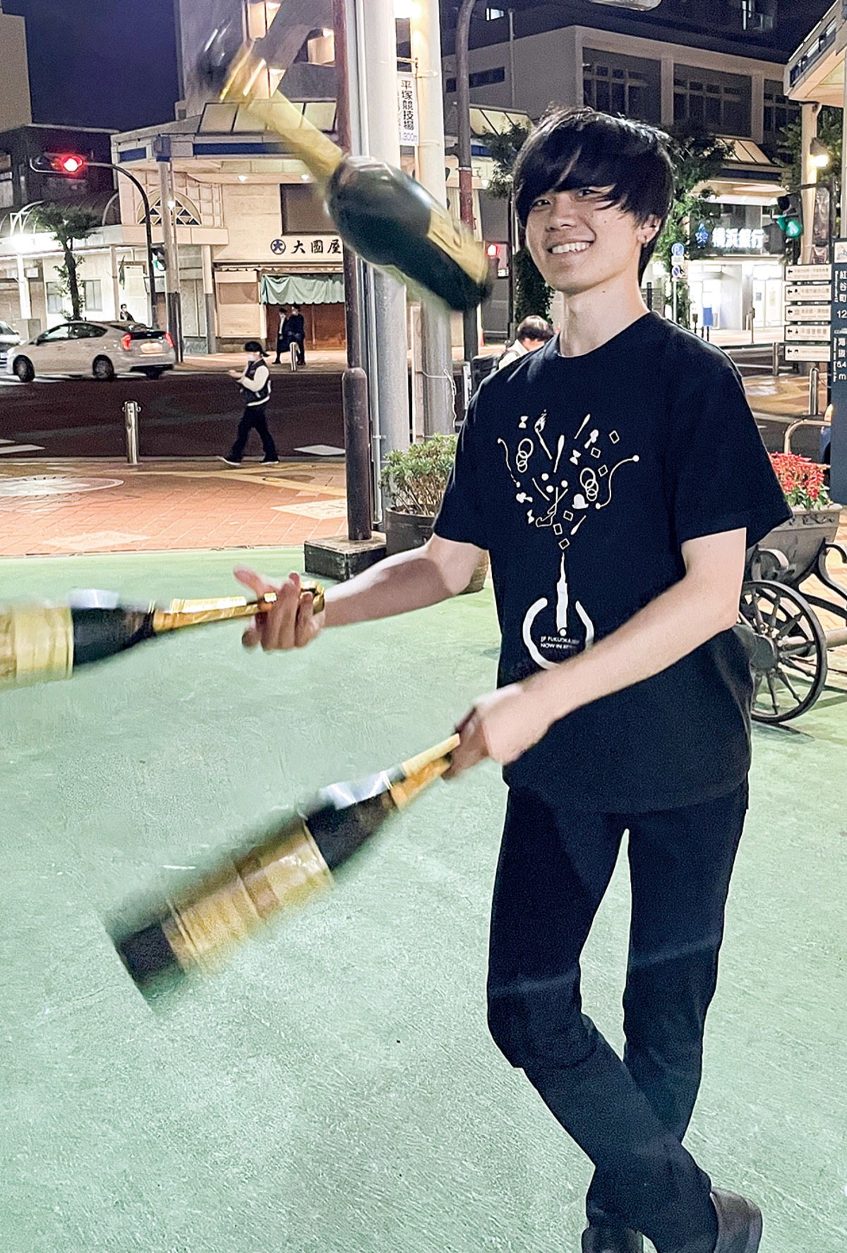 畠田さんは大学時代に大道芸ではなく、競技としてのジャグリングを始めた。2019年には関西ジャグリング大会で優勝した程の腕前。500以上の技を駆使しながらも新技の開発に余念がない。