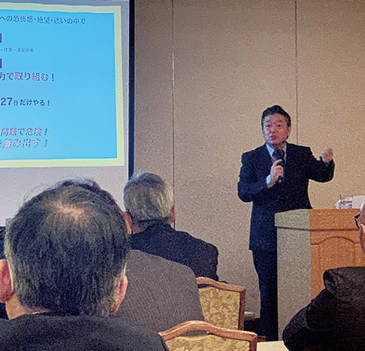 平塚経進会主催の講演会「あきらめなければ道は拓ける 朝の来ない夜はない〜負債40億円からの挑戦〜」が10月25日、市内で行われた。
