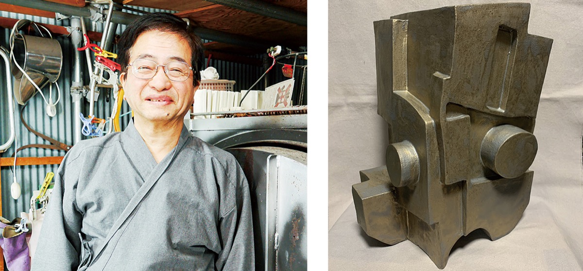 出展作品(高さ53、横36、奥25cm)は、板状に形成した粘土、砂金釉を使い、1180度で焼成した。「サイズの規定があるのを知らず、大きいものを作ってしまった」とトラブルもあったが、高さを調節し、基準に合わせながら6カ月ほどかけて完成させた。