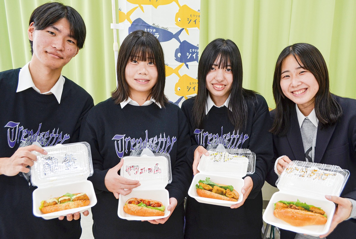 平塚農商高校3年生の生徒が平塚の特産品を若い世代に広めようと、11月5日に開催された同校の文化祭で鳥仲商店(黒部丘)と共同開発したシイラを使ったホットドッグを販売した。