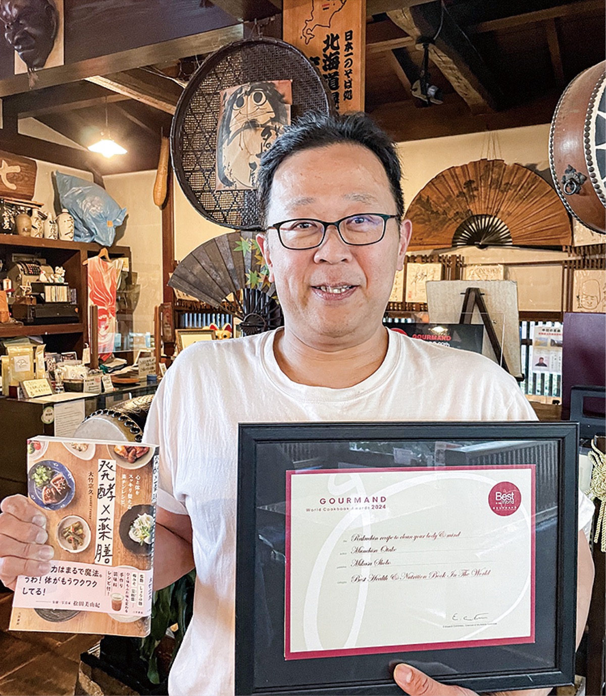 そば処名古屋(桜ケ丘)の店主・大竹宗久さん(52)=人物風土記で紹介=著書の「発酵×薬膳 心と体をスッキリ整える楽チンレシピ」が、各国の料理本を顕彰する「グルマン世界料理本大賞」の健康と栄養部門でグランプリに輝いた。
