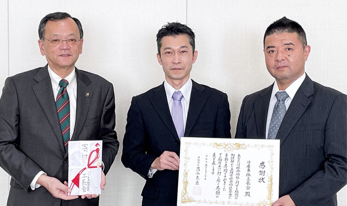 日産車体工長会が12月20日、市の福祉向上のためにと平塚市社会福祉基金に13万3千円を寄付した。