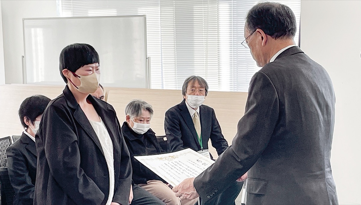万田の福祉施設「進和学園」(出縄守英理事長)の利用者らで構成される「しんわ本人自治会連合会」が12月25日、平塚市役所を訪問し、同会が昨年集めた年末募金46万6336円を落合克宏市長に手渡した。