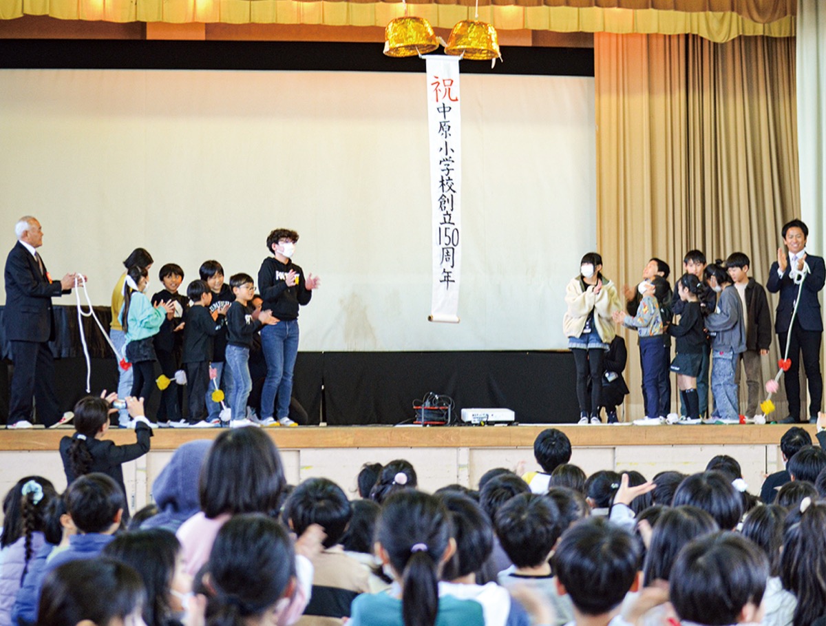 中原小学校(伊藤晴江校長/児童数433人)が1月18日、創立150周年記念式典を開催し、全校児童をはじめ保護者や来賓など約500人が参列した。