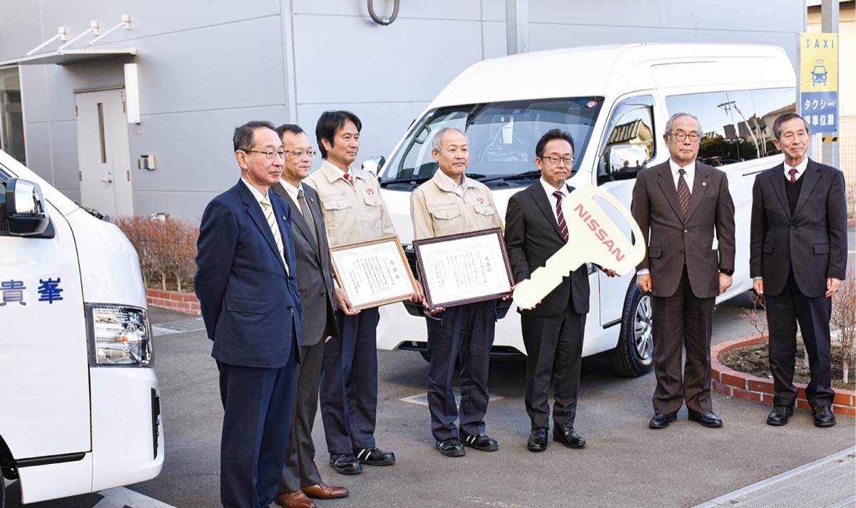田中貴金属グループのEEJA株式会社(新町)が1月26日、福祉施設を運営する平塚市内の社会福祉法人に福祉車両を寄贈した。
