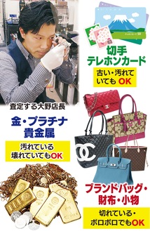 大野恭兵店長は「『こんな状態でも買い取ってもらえるの?』と驚かれるケースもあります。指輪やネックレスなどは、壊れていたり汚れていて『売れるか分からない』という品物でも値が付く場合があるので、捨てずにお持ちください」と笑顔で話す。
