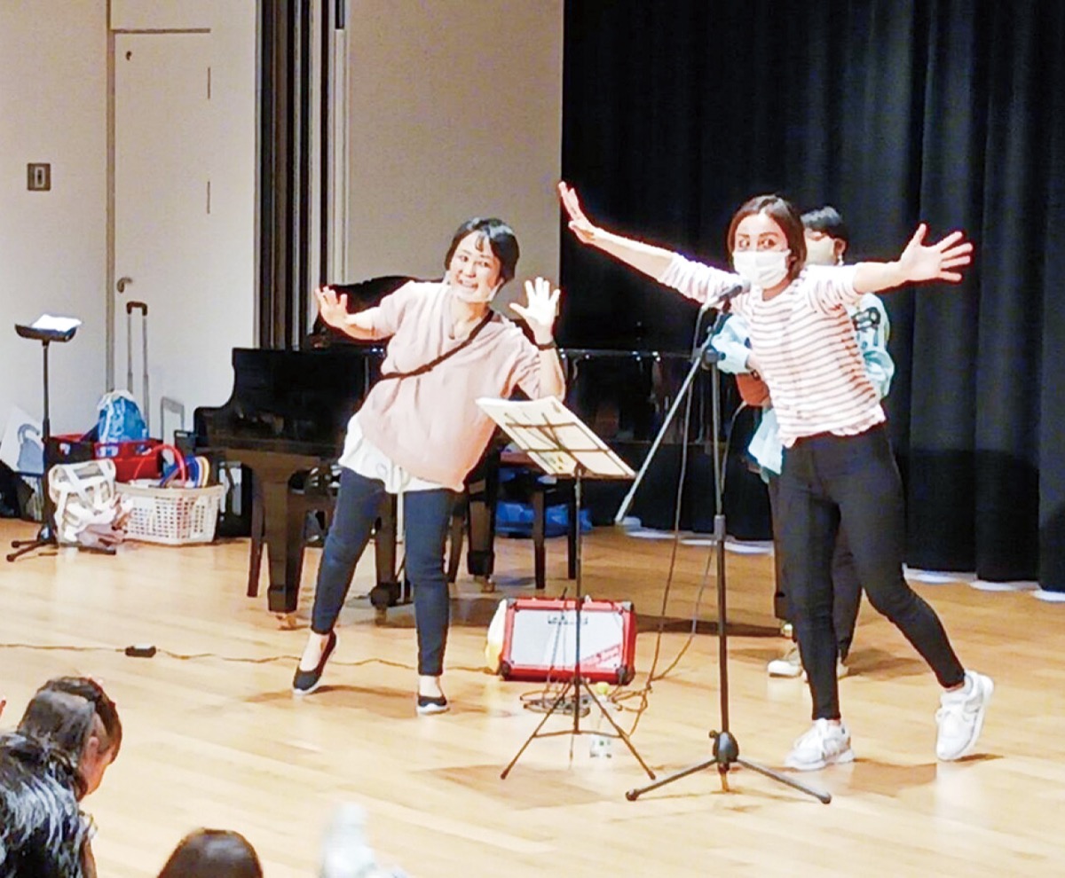 午前の部(午前10時30分〜)のリトミック発表会ではスクール生が体を使って英語や音楽活動を披露する(観覧無料)。