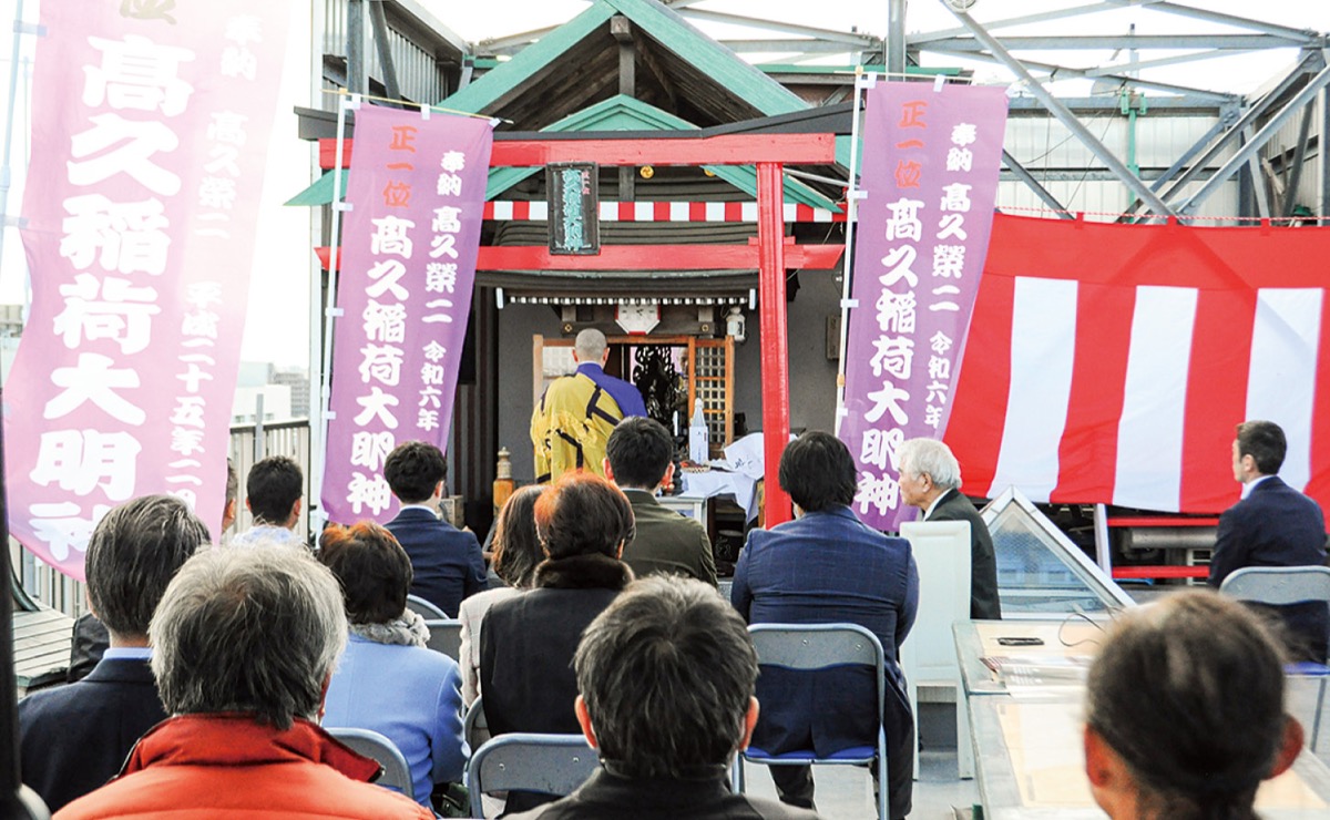 同社会長の高久栄二さん(81)は早産で生死をさまよう状態で出生。父・二郎さんが社を建て稲荷神社を迎えることで栄二さんは元気に育ち、商売繁盛したとしている。同社では初午まつりを大切に続けており、最盛期では500人の客を集め、ご利益を地域に還元していたという。
