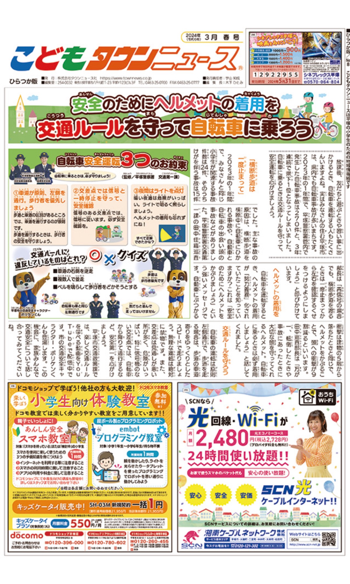 平塚編集室では、市内の小学校全児童に配布する「こどもタウンニュースひらつか版」の第8号を3月8日に発行しました。テーマは「こどもたちの安全」です。