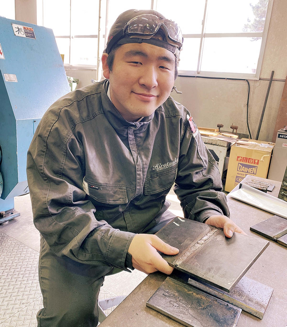 手先が器用だという両親を見て育ったこともあり、自身もものづくりなどの分野に興味を持ち同校に進学。溶接が専門分野の水野寧々教諭が顧問を務める機械部に入部し、溶接の腕を磨いてきた。
