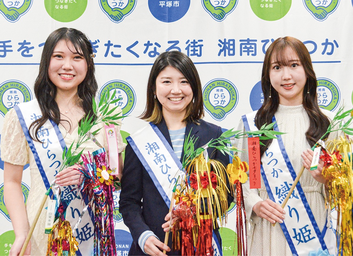 選ばれたのは長原百愛さん(18)、田中潤子さん(37)、山本藍里さん(24)。幼少時代から毎年七夕まつりに来ていたという長原さんは「ダンス部だった経験を生かして、七夕おどりをみなさんと楽しみながらPRしたい」と笑顔を見せた。子育て中のママとして初めて織り姫に選出された田中さんは「日本各地や海外で暮らした経験を生かして、平塚の魅力を発見して広めていきたい」と意気込んだ。留学経験がある山本さんは「留学の経験で培ったやり抜く力と、持ち前の笑顔や明るさで平塚の魅力を発信していきたい」と抱負を語った。