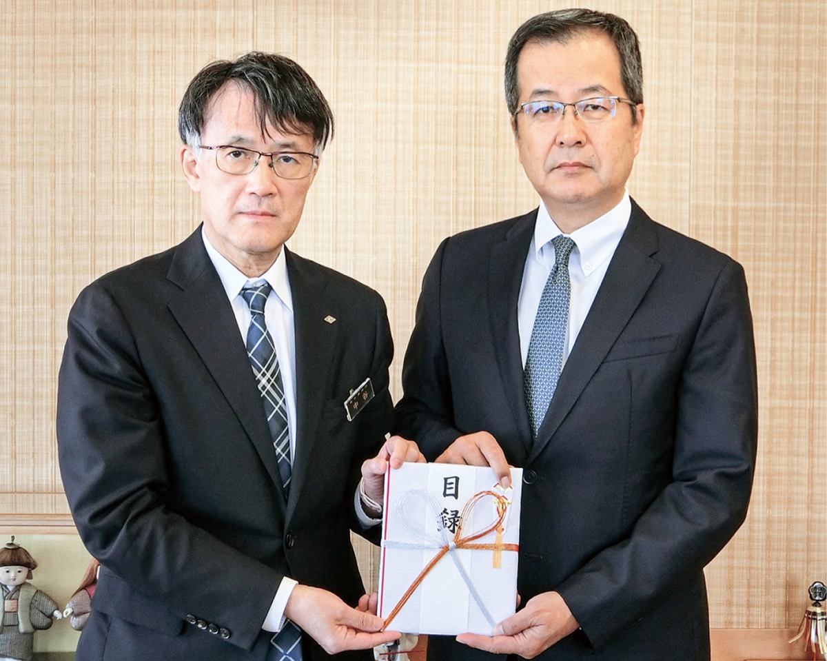 能登半島地震の被災者支援のため、紅谷町に本社を置く荒井商事株式会社(荒井亮三代表取締役社長)が義援金として1035万5622円を寄付した。3月21日、都内の石川県東京事務所で贈呈式が行われた。