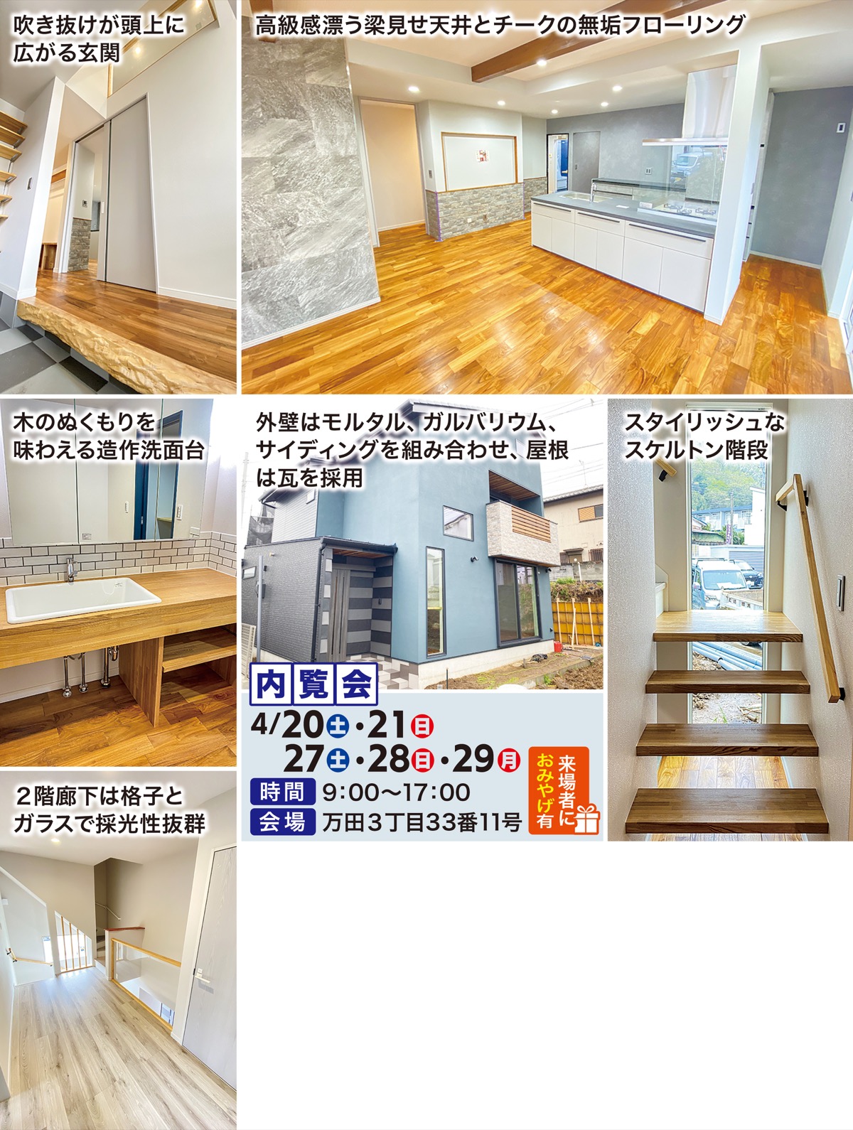 卓越した大工技術とモダンなデザインで子育て世代にも人気の直建が、4月の土日祝日に内覧会を開く。会場は、高瀨直也社長の下で働く弟子で甥のマイホーム。「大工が住みたくなる家」を見学できるチャンスだ。