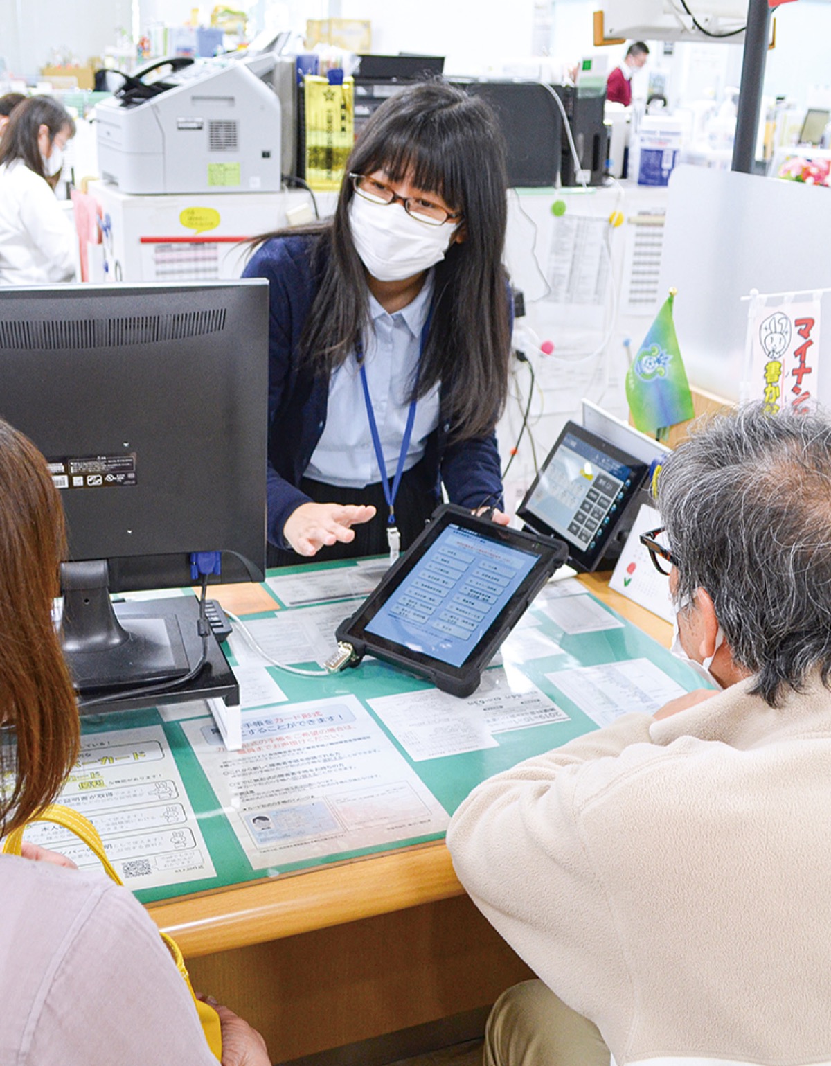 同課では端末に表示される画面も文字が大きく、色覚障害の人にも読みやすいユニバーサルデザインを採用。担当者は「スマホや自宅から手続きができるサービスもある。それぞれの人に合った選択肢を増やすことで市民サービスの向上につながれば」と期待を寄せた。